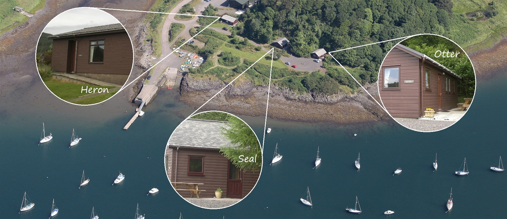 Ardoran Marine Self-Catering Lodges - three secluded lochside cottages overlooking our pontoon & moorings with stunning views over Loch Feochan and beyond. Just five miles south of Oban in beautiful Lerags Glen.