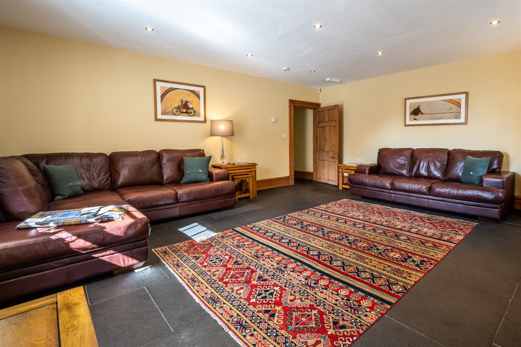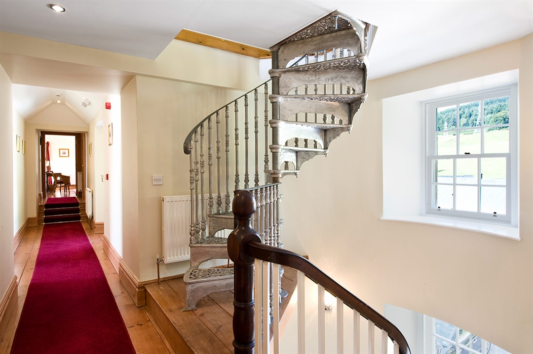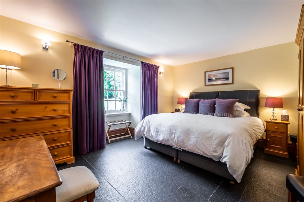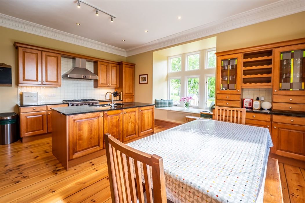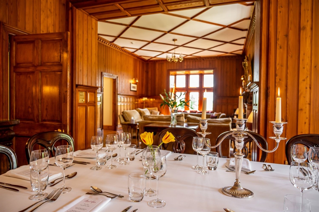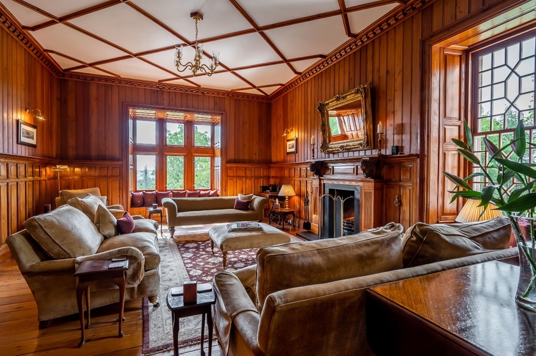 The main floor is home to a grand drawing room with wood paneling. There is also a quiet sitting room, a TV lounge and fully equipped kitchen with AGA. Choose between the flexible choice of self-catering and catered stays with owner chef, Graham Waugh.