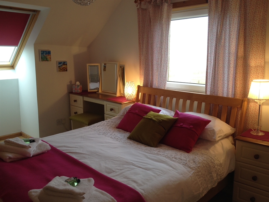The Attic Suite is a serviced accommodation on the first floor within our own home. The suite sleeps up to 3 . The suite comprises of two bedrooms- a double and a single, a shower room, and a living/dining/kitchen area. The suite will be solely for the use of your party. You will have views of the stunning Luskentyre beach where you will often see our ponies, Toby and Isla, roaming free. Our house is situated on a working croft-on which we keep sheep and hens.