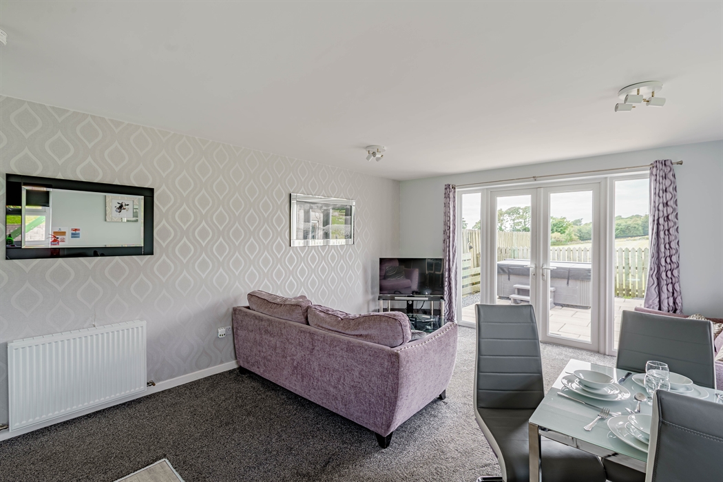 The spacious and contemporary design offers one spacious double bedroom with an en-suite shower room, a charming twin bedroom and an additional single bedroom. The open-plan living space seamlessly transitions to external decking, complete with an inviting outdoor hot tub, providing the perfect setting for family breaks and special occasions year-round.