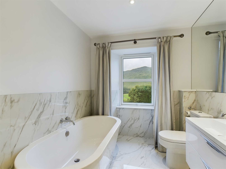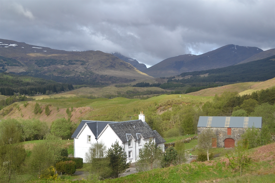6 bedroom detached farmhouse located between Crianlarich and Tyndrum, 1km from the main road. This is the perfect retreat for peace and quiet, yet only minutes from local amenities should you require them. This is a practical family home. Rooms are spacious, recently decorated and have access to wifi. There are 4 ensuite rooms and 2 bedrooms share a beautiful bathroom. All of the showers are level access and recently ronnovated. The house has 3 sitting areas, two with TVs and a formal music room with a Grand Piano. The Dining area has a generous table which seats up to 16 comfortably. This house is ideal multigenerational gatherings and reunions or friends looking to explore the Highlands. The location is ideal for exploring the local area. Auchtertyre House is located in the Loch Lomond & Trossachs National Park. Throughout the year a huge variety of events take part in the Park. Whatever the weather the park offers stunning surroundings for your visit. There is something for everyone : walking, cycling, boating, golf, wildlife watching, canoeing, windsurfing and mountain biking. The West Highland Way passes 500m in front of the house. The track follows Strathfillan and offers a lovely walk and cycle route north to Tyndrum or south to Crianlarich. There are many lovely walks from the house. If you go out of the front gate and turn right, after 500m you will come to the River Fillan. There are some gorgeous waterfall and rapids to be discovered (please make sure children are accompanied). For the more energetic the house is surrounded by Munros in every direction. Benn Challum (1025m) is the closest, simply walk out of the house and head up hill! There is a map on the wall in the kitchen for you to plan your adventures. Glencoe Mountain Resort is 45 mins away. In the summer this offers numerous activities including mountain biking and climbing. In the winter it offers 19 runs across 7 lifts which caters for skiers and boarders of all levels offering some of the longest and steepest ski runs in Scotland. 25 mins from Auchtertyre House is Lochearnhead which has an excellent water sports centre. Alternatively Loch Lomond is 20mins away and the West Coast is 45 mins away. If you have your own small boat or canoes, Loch lubhair is only 10 mins away. There are many areas where fishing can be arranged. The closest is the River Fillan (5 mins). Auchtertyre is very well served by rail and road. Crianlarich is only two miles away and has regular train services to Glasgow, Oban, Fort William and a sleeper service to London. Equally Auchtertyre is located close to a number of key Highland roads. In about an hour you can be in Glasgow to the South, Oban to the West, Fort William to the North and Perth to the East. There are a number of options for eating out close to Auchtertyre. These include the Real Food Cafe in Tynrum which does an exquisite Fish & Chips; The Tyndrum Inn, a family run Inn with a vibrant bar and great food. And a selection of pubs and restaurants in Killin.The location is ideal for exploring the local area. Getting here by Road The house is between Crianlarich and Tyndrum, 1km up a farm track off the A82. To get there head North up the A82 from Crianlarich towards Tyndrum. About 1 mile north of Crianlarich you shoiuld turn right off the A82 up a single track road signposted for Strathfillan Wigwam Farm. Drive straight through the old wigwam farm keeping the farm shop on your left. Proceed up the hill and the house is above you. Public Transport Auchtertyre is one hours drive from Glasgow and just under 2 hours from Edinburgh. Crianlarich train station is only 2 miles away and offers Sleeper Service to London. Oban is 1 hour away and Fort William 1hour 45minutes.