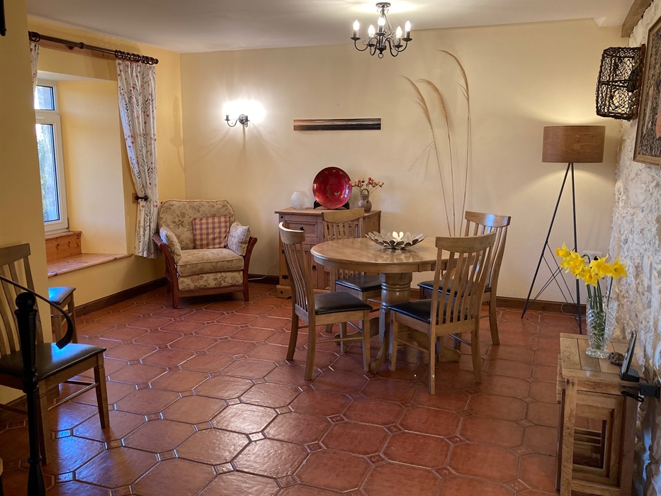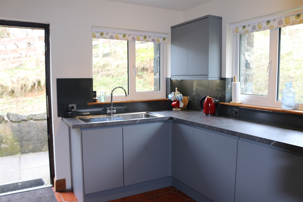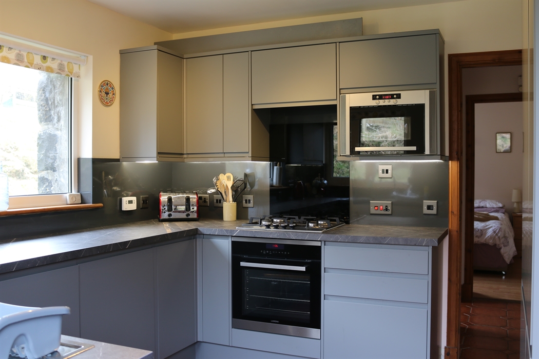 There is a large open plan sitting/dining room with comfortable sofa, chairs and window seats, and with a recently fitted wood burning stove. The kitchen is equipped with a gas oven and hob, microwave, dishwasher, washing-machine and a large fridge/freezer. All cooking ustensils, crockery & glassware are provided. There is a separate hallway area for coats, wellies, shoes and muddy walking boots!