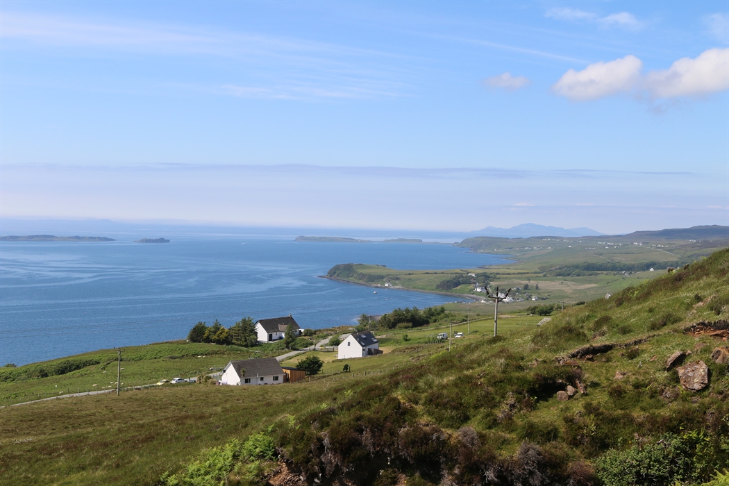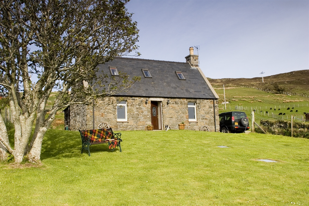 The traditional stone built cottage sits on an elevated position with fantastic views of Lochbay, the Minch and over to the Western Isles. The cottage offers a comfortable and relaxing dwelling on two floors.