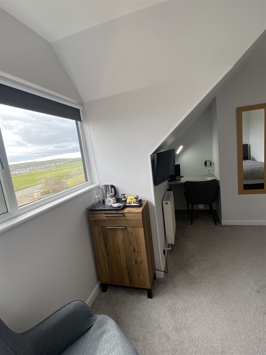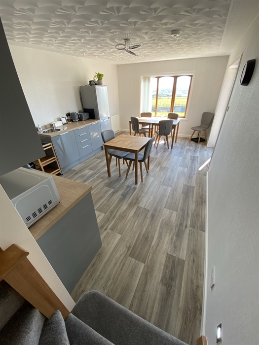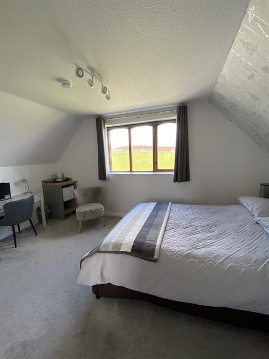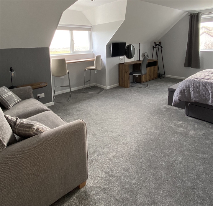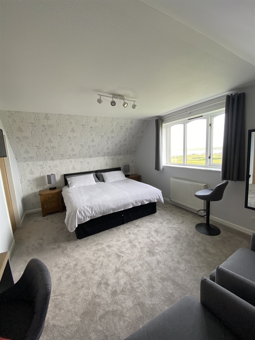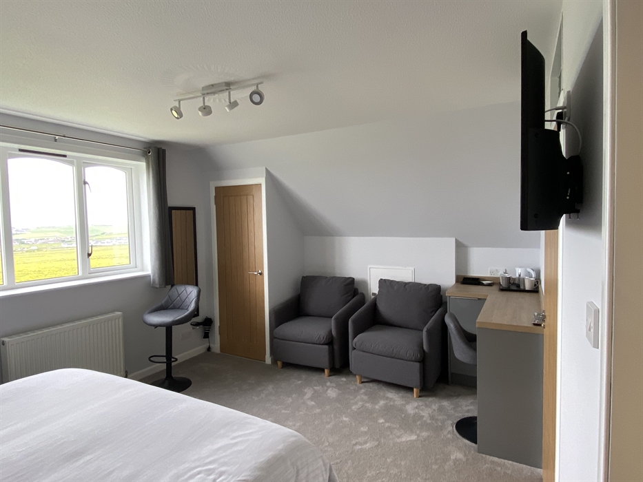 Aultnagar Accommodation welcomes you to our newly refurbished en-suite guest bedrooms and dining room on the outskirts of Kirkwall with spectacular views over the town, harbour & countryside. Private entrance into the dining room with stairway leading to the bedrooms.