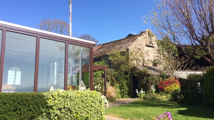 The pretty gardens - at both the front and back of the Lodge, are fully enclosed making it a safe place for small children to play and dogs to run about in. There's also outdoor seating under a covered terrace with a fire pit and BBQ. It’s a lovely spot in the day as well as the perfect place to be for star gazing at night!