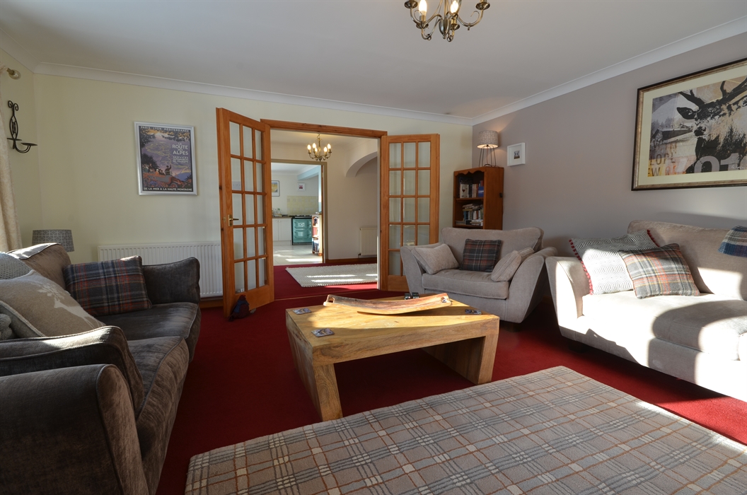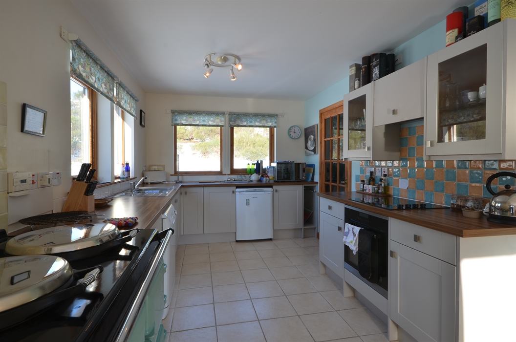 Outside, there is parking for a number of cars right at the front door and a useful ramp that leads to the rear door. The house is surrounded by an extensive fenced rough grass garden with a summerhouse and the charming Ballnellan Burn gurgling away at the front.