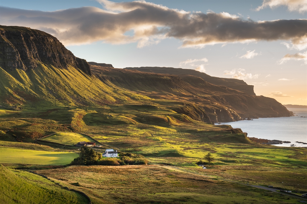 Luxury accommodation beside the loch in a lovingly renovated farmhouse with dramatic sea and cliff views.