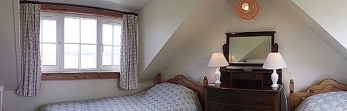 Above the sitting room, reached by a separate staircase, is another twin room and a double room with two additional single beds.
