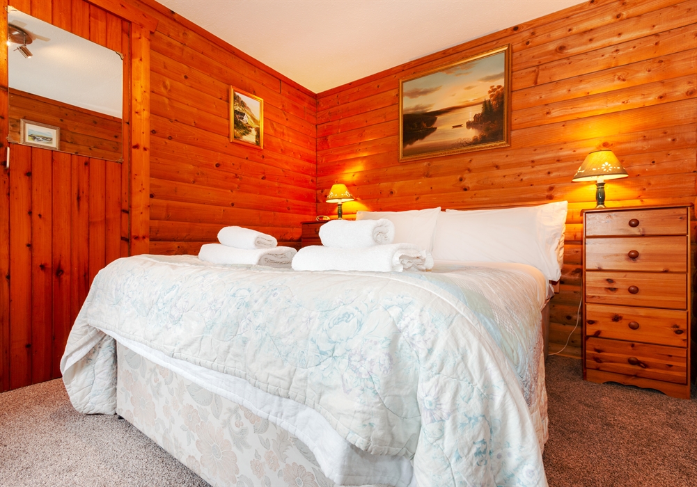 A double bed with ensuite toilet, wash basin and shower cubicle. This bedroom is accessed via the third bedroom.