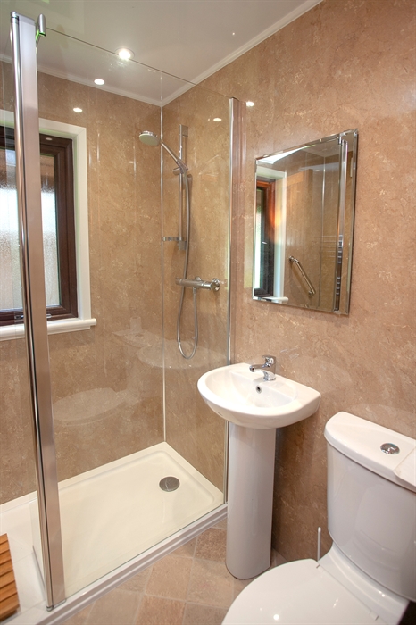 Bathroom with walk-in shower. A baby bath can be hired free of charge for those with infants.
