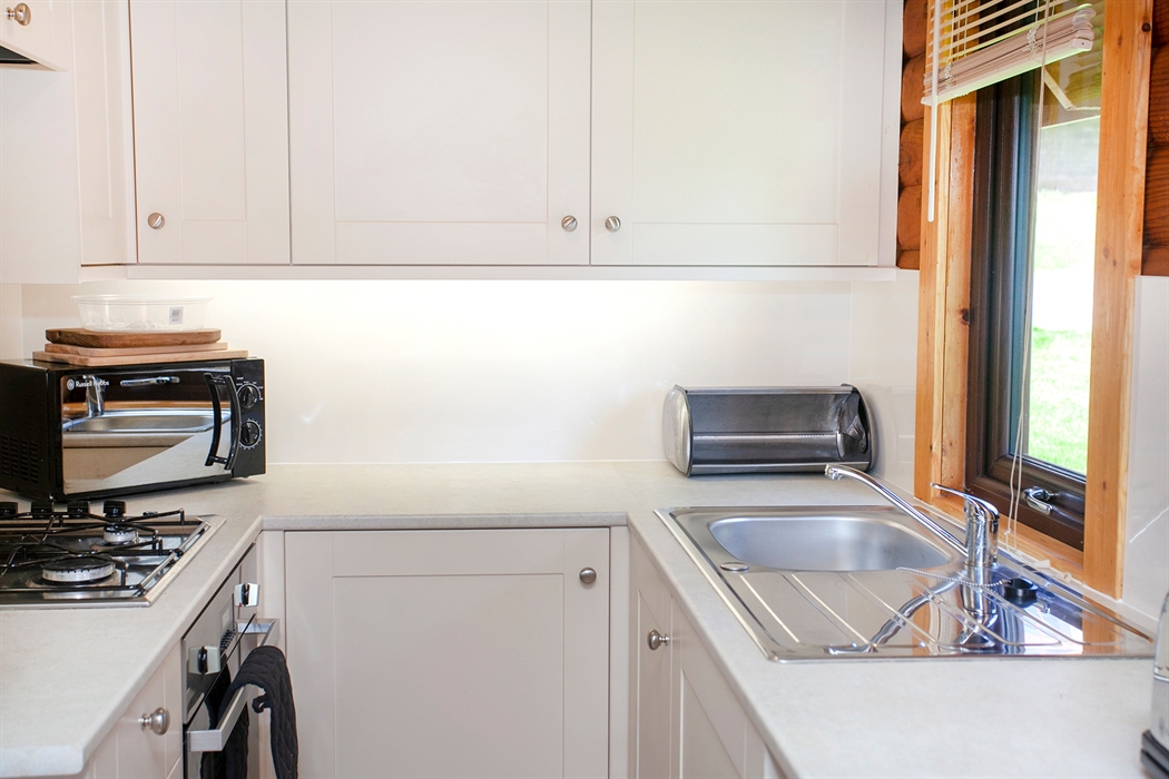 A well-equipped extended kitchen with a gas hob and electric oven, fridge, freezer, dishwasher, microwave, kettle, washing machine and toaster. A separate large fridge-freezer is stored in the hallway cupboard for your convenience. A full range of cooking utensils, crockery, glassware and cutlery is provided.