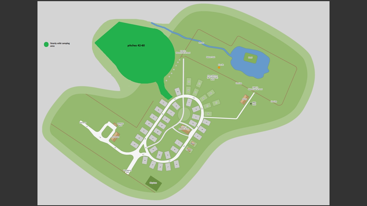 The grass pitches are there for the smaller vehicles and tents and are located overlooking the nature park and pond. A number of these pitches have electricity. Water taps are shared amongst the grass pitches. Just pitch up your tent where-ever it feels right.