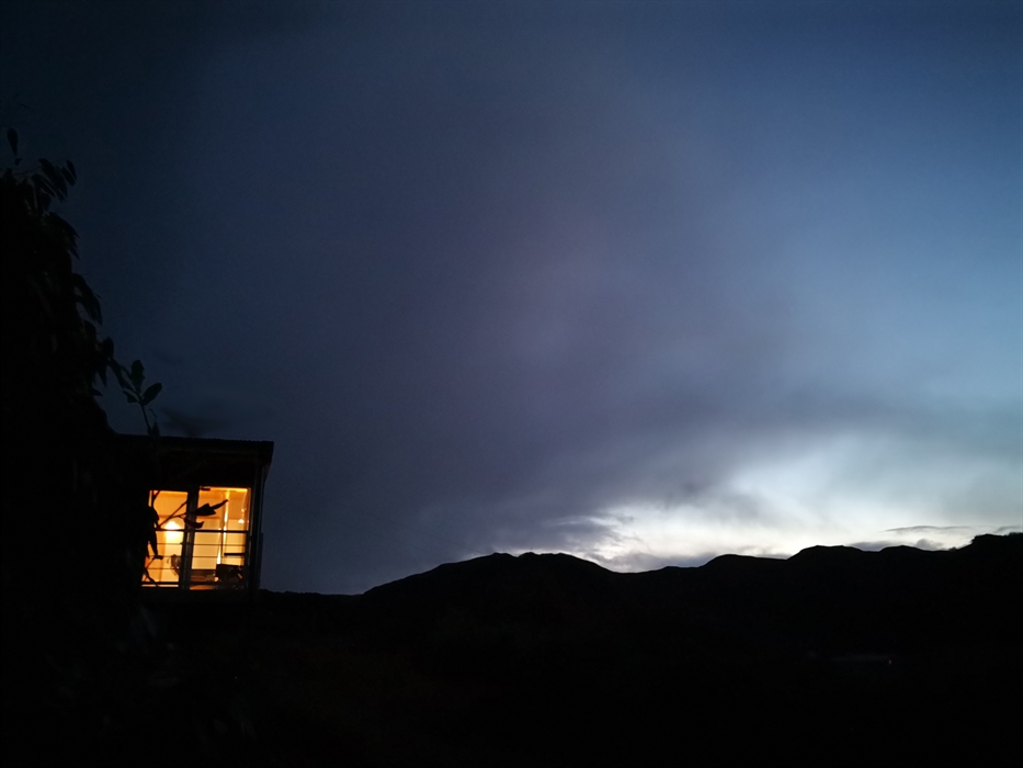 Well apart from our love for Common Pipistrelle Bats (and our gratitude they enjoy the odd midge for dinner!) the new cabin's shape and its overhanging roof has more than a passing resemblance to (you've guessed it) a bat box! On summer evenings you may well see the local bats sweep back and forth in front of the cabin or hear the Tawny Owls that call Inverkirkaig their home. There are boxes hidden in the adjacent trees.