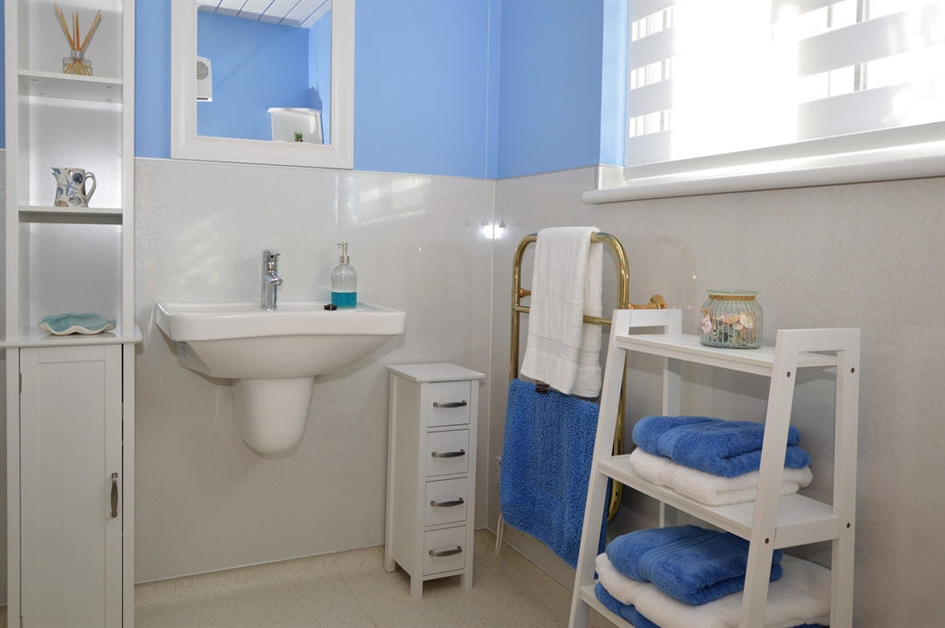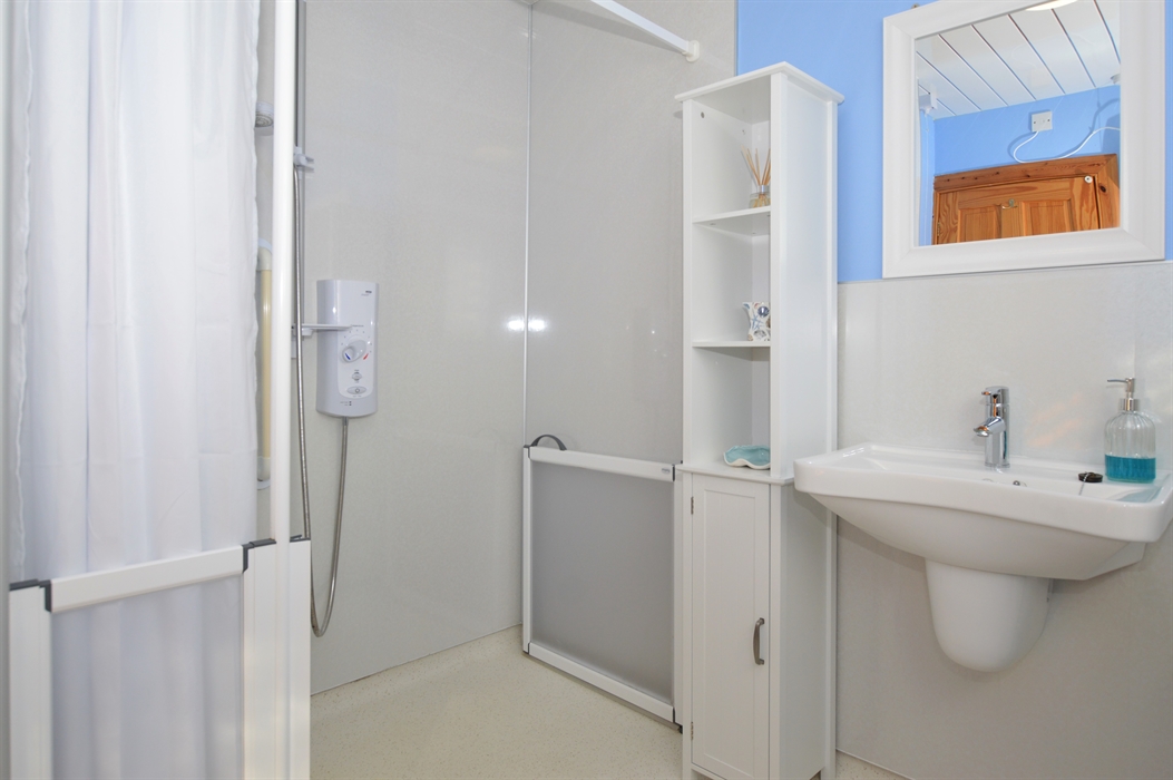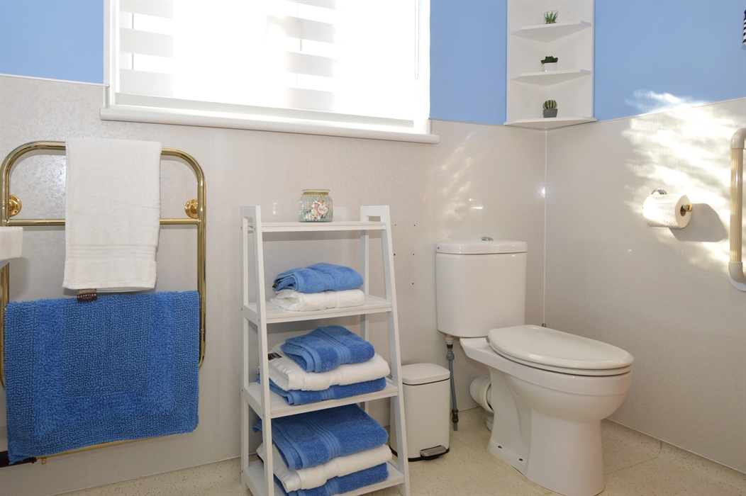 The family bathroom is complete with a walk-in shower/wet room, hand basin, grab rails, heated towel rail and toilet. Perfect for accessability issues. The property also has ramped access to the rear.