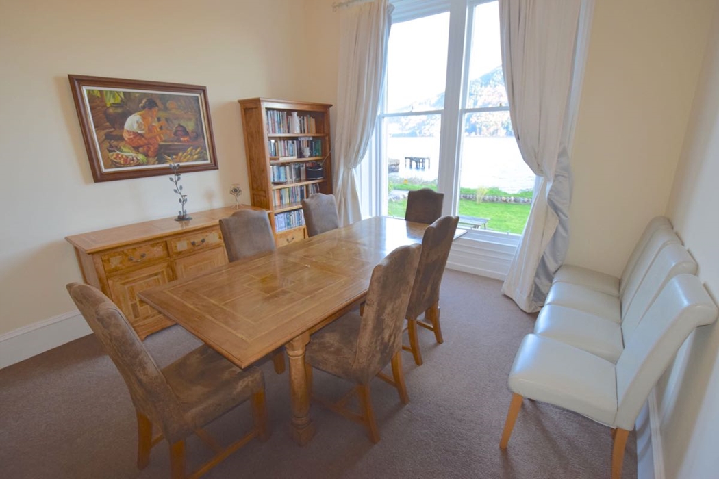 Across the hall is a separate dining room with a table for up to 8 guests, who can also feast their eyes on the view of the loch and the 14th century castle through another huge window.