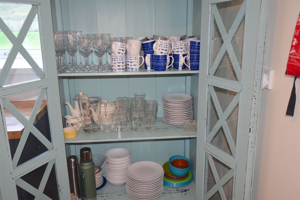 The modern kitchen is behind the dining room and is fitted with all the appliances, crockery and utensils you will need for a self-catering holiday – it also has views across fields to the farmstead behind and up onto the mountainside rising beyond to distract you from the washing up!