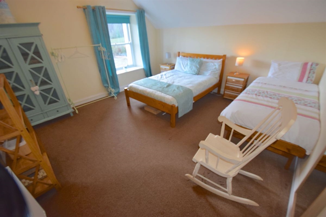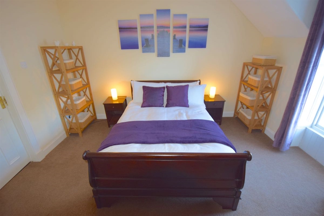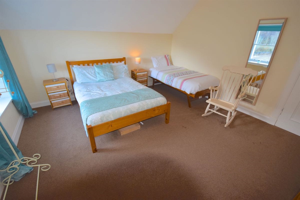 Bedroom 3: sleigh style double bed plus single bed, mountain and loch views.