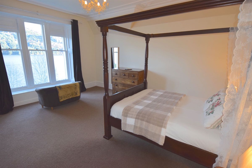 Bedroom 1: 4-poster bed, loch view, en-suite shower and WC.
