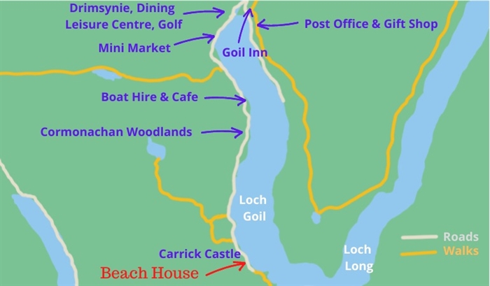 Just yards from your front door you are on the shores of this scenic, tidal sea loch. Perfect for fishing, exploring the waters between the rocks with nets and strolling along the quiet loch side road. With views north towards Lochgoilhead, south to the entrance from Loch Long and mountains all around, this is a scenic and peaceful place to stay.