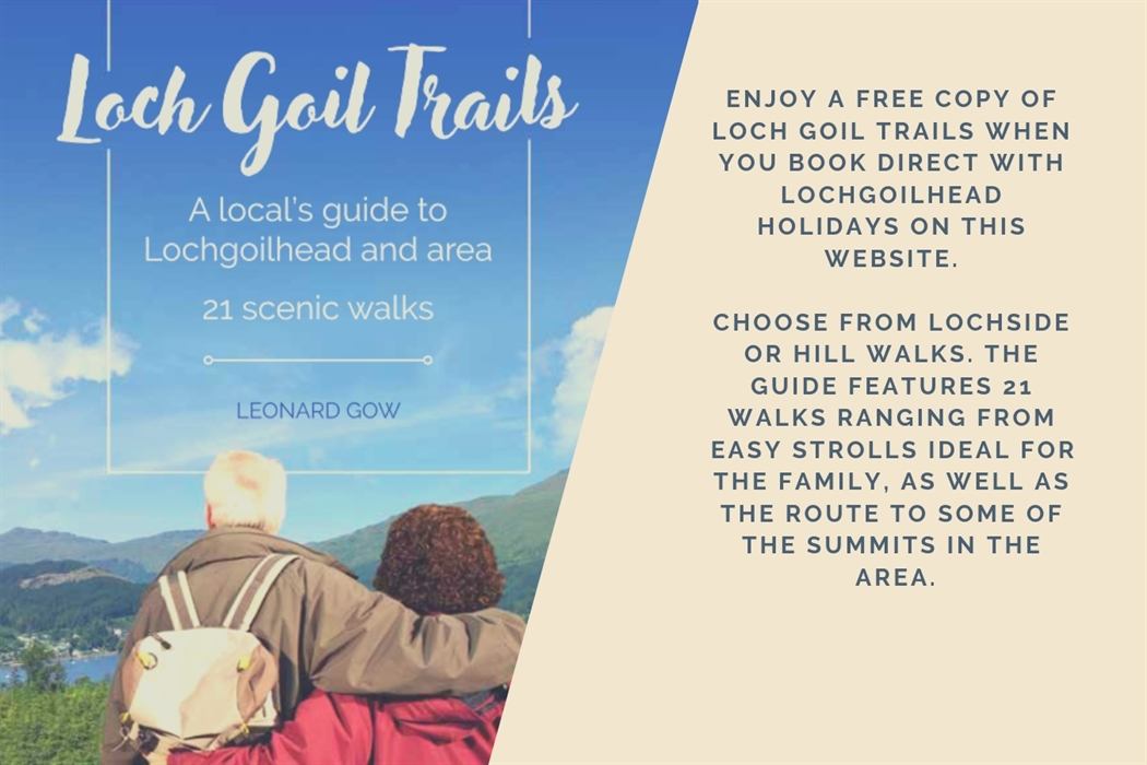 LOCH GOIL TRAILS WALKING GUIDE. Plan your walks in advance and look forward to exploring this wonderful walking area. 21 featured trails for walkers and non-walkers. Find the loch side, hill walks, easy strolls ideal for the family, dog walks, as well as the paths to some of the summits in the area. The guide is posted after the deposit or payment has been made. £7 -UK or £10 - Non UK.