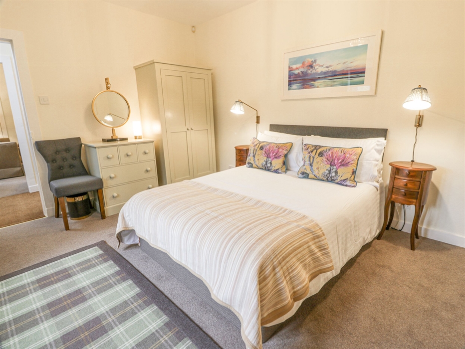 This sunny south-facing cottage nestles in the wooded grounds of Pitmedden Garden. The garden lies just fifteen miles from Aberdeen and features miles of geometric boxwood hedging to wander round, all secluded behind walls of granite - the same stone