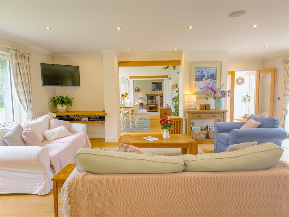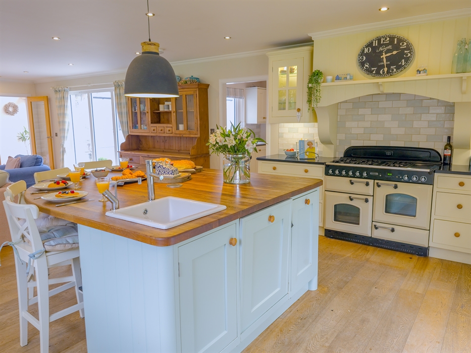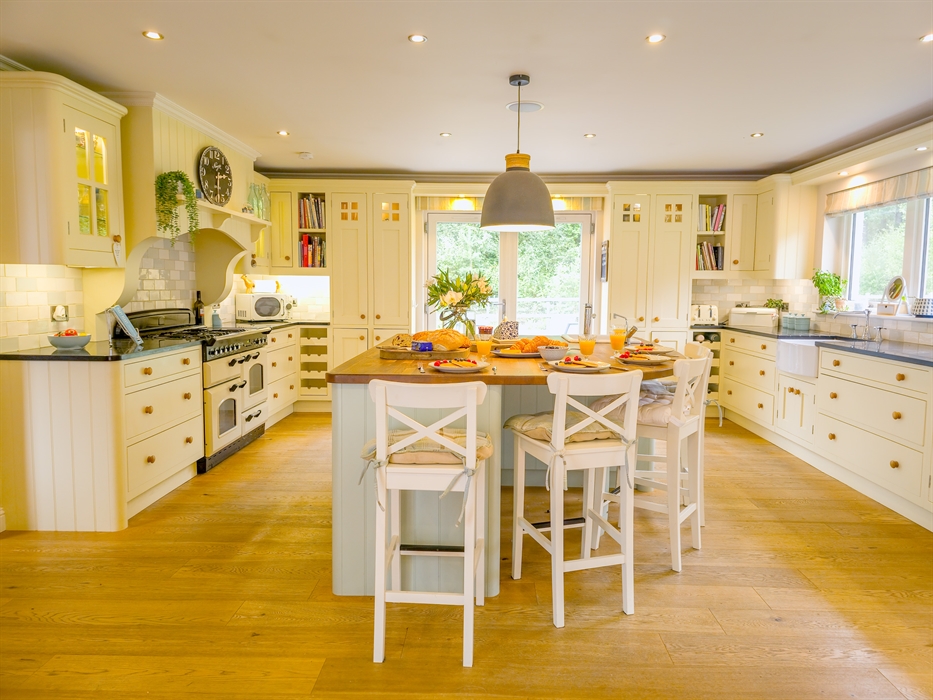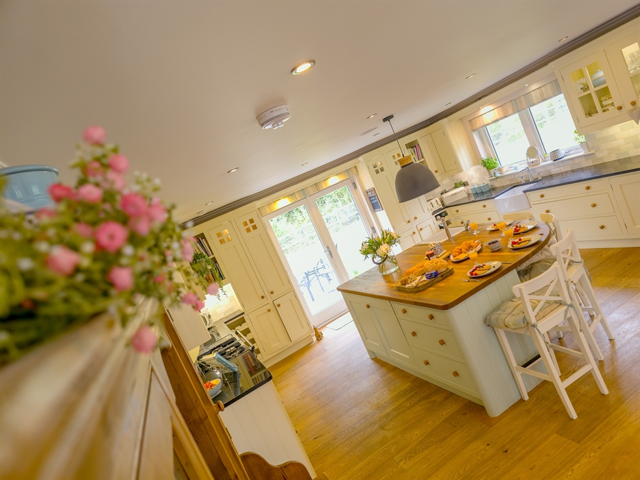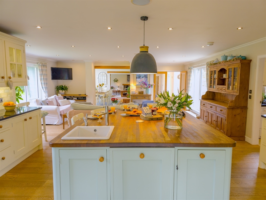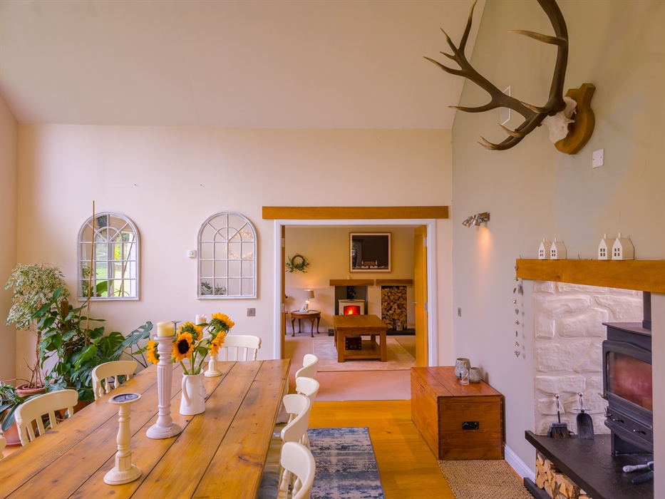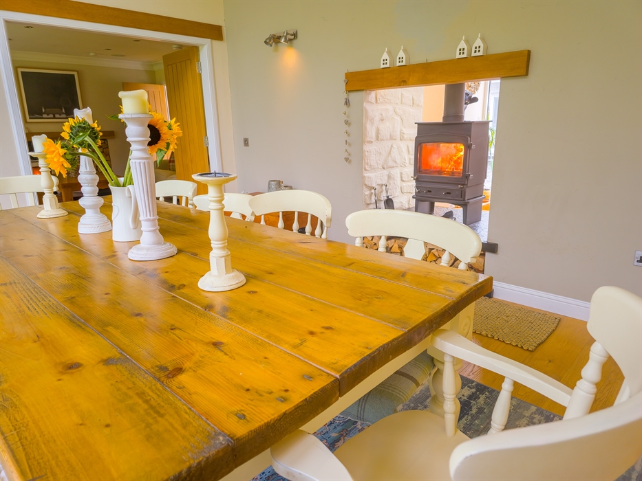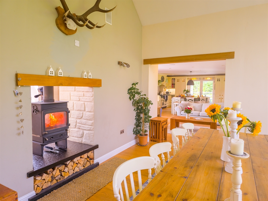 The heart of The Bellhouse is its grand kitchen, a hub of culinary delight and social gatherings. Featuring an honesty bar and an island seating area with plush sofas and a smart TV, it’s perfect for hosting friends and family. The space seamlessly flows into a spacious dining room, complete with a dual-aspect wood-burning stove, setting the stage for memorable celebrations, be it Christmas, a special birthday, or an anniversary.