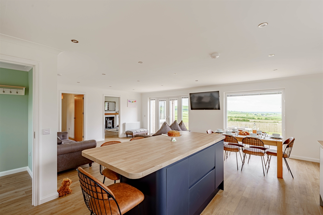 Spacious accommodation for 6 all on one level: Accessed from a large tarmac driveway with ample parking via either steps or ramp access leading to hallway with coat and boot storage and a cloakroom with WC and wash hand basin; Open plan newly fitted kitchen and utility area with designated dining and living areas with floor to ceiling picture window and patio doors to take advantage of the stunning views across the surrounding countryside to the Solway and beyond; Sitting room with wood burning stove; 2 King size bedrooms one with en-suite shower room with large quadrant shower, WC and wash basin; Twin bedroom; Family bathroom with over bath shower, WC and wash basin.