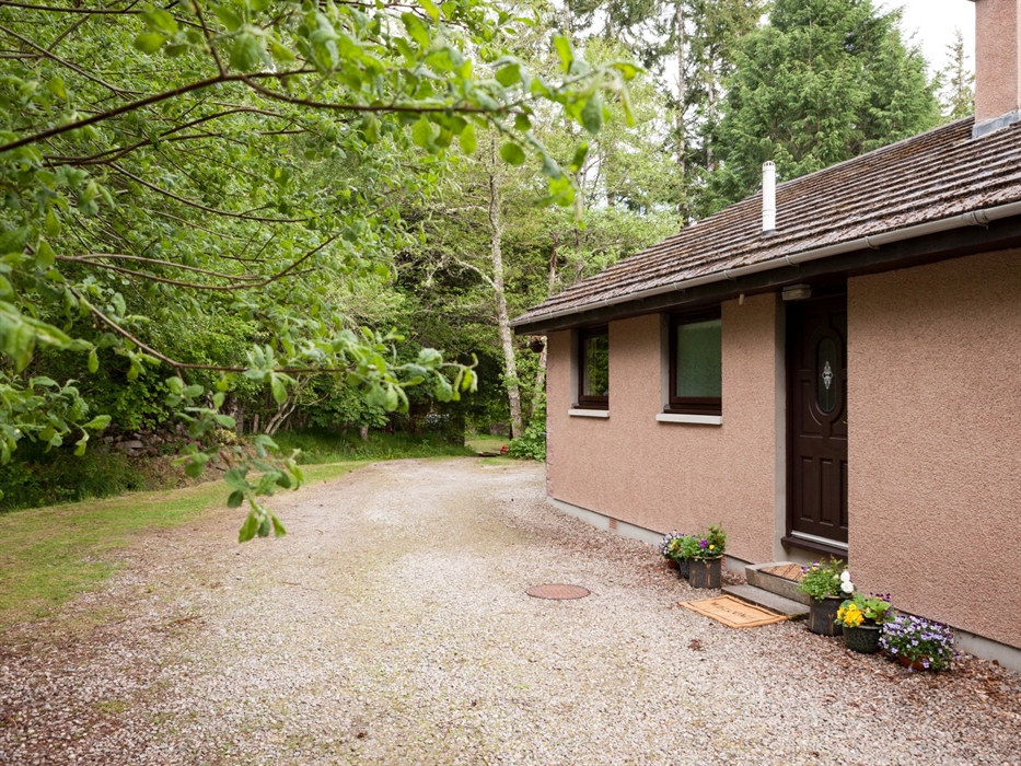 This attractive detached bungalow is in a small hamlet built around a country house hotel on a wooded hillside 5 miles from Drumnadrochit. A great spot for touring Ben Nevis the West Highland Coast Cairngorm National Park and Moray Firth all within driving distance. Glen Urquhart runs from Loch Ness deep into the wilderness area of Glen Affric with excellent walking cycling and climbing routes while Loch Ness offers water sports sailing and cruises. There are shops and pubs in Drumnadrochit with further facilities in Inverness 20 miles away. This is a good central touring base. Riding centre nearby as well as a golf course. A tour of the renowned Urquhart Castle and Loch Ness exhibition centre should not be missed. The accommodation offers THREE bedrooms: 1 king size with Freeview TV 1 twin and 1 bunk bedroom. Bathroom: with bath. Shower room. Lounge/diner: with double sofa bed TV DVD and patio doors from dining area to the garden. Kitchen: with electric oven American fridge/freezer washer/dryer dishwasher and microwave. Amenities: parking Wi-Fi bed linen towels and electric heating included. Regret no smoking. 2 dogs by arrangement. Additional info: Angling can be arranged. Outside: enclosed garden. Arrival: 4pm.