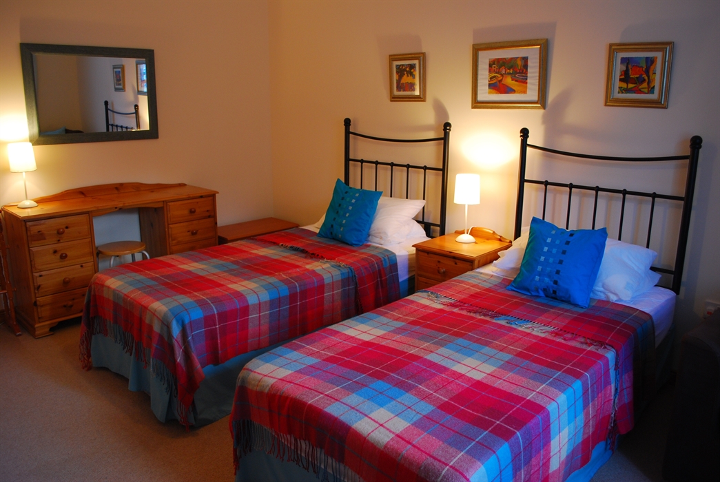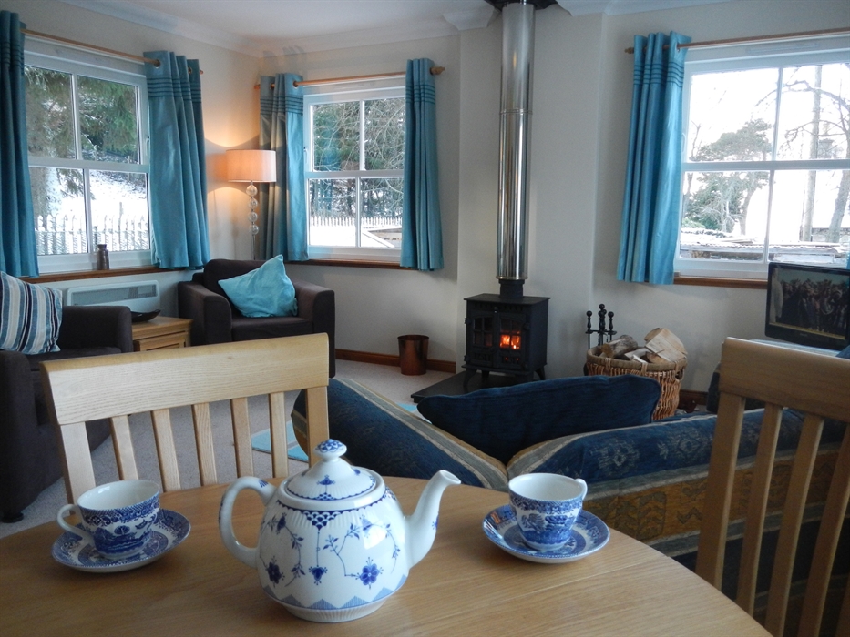 The accommodation which is all on one level consists of two good sized bedrooms and sleeps 4. The cottage has a bright and comfortable lounge with dining area and a wood burning stove, perfect for cosy evenings in winter. Windows overlook the garden and beyond to the hills of Upper Deeside and the River Dee. There is a well equipped kitchen and bathroom with electric shower.