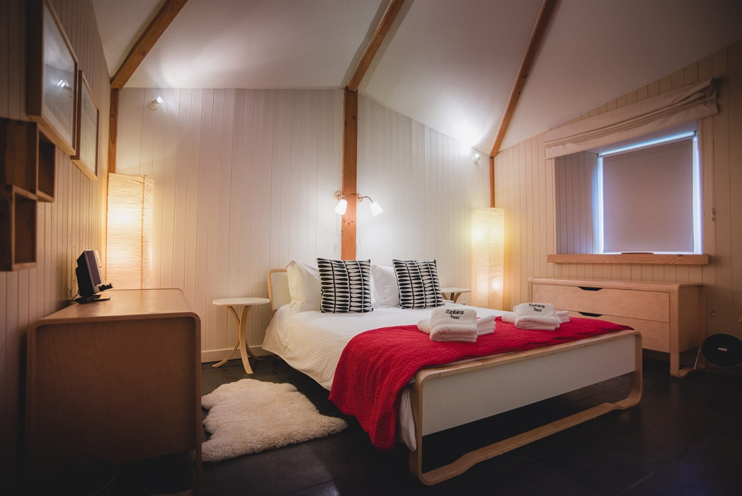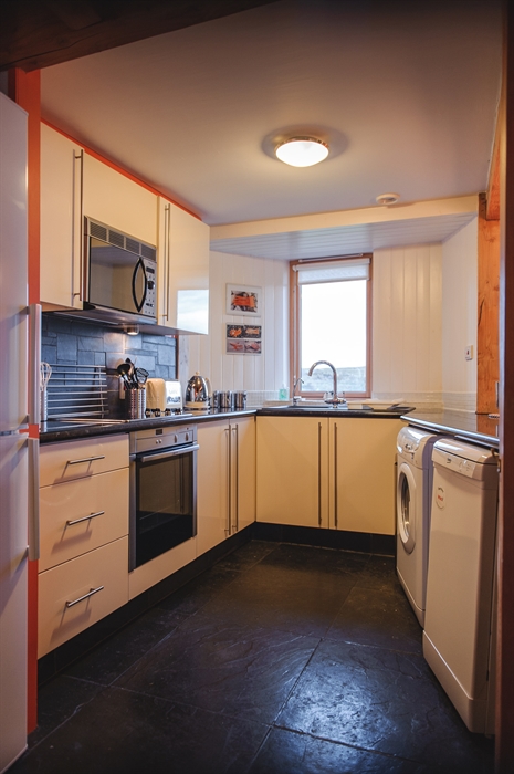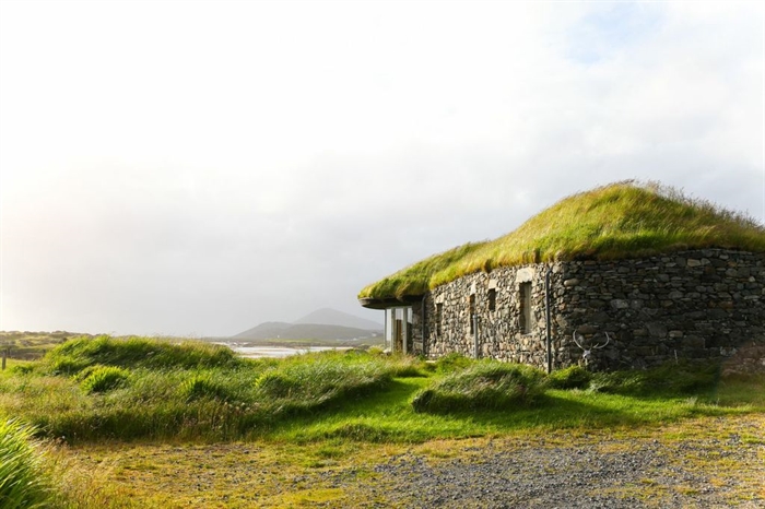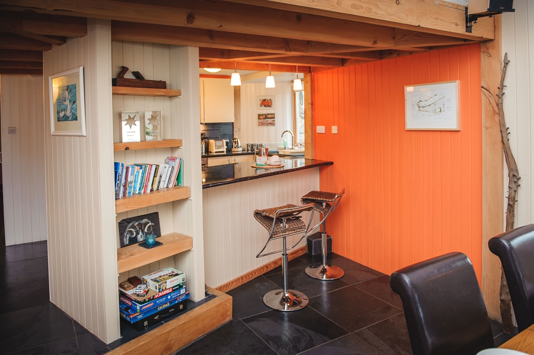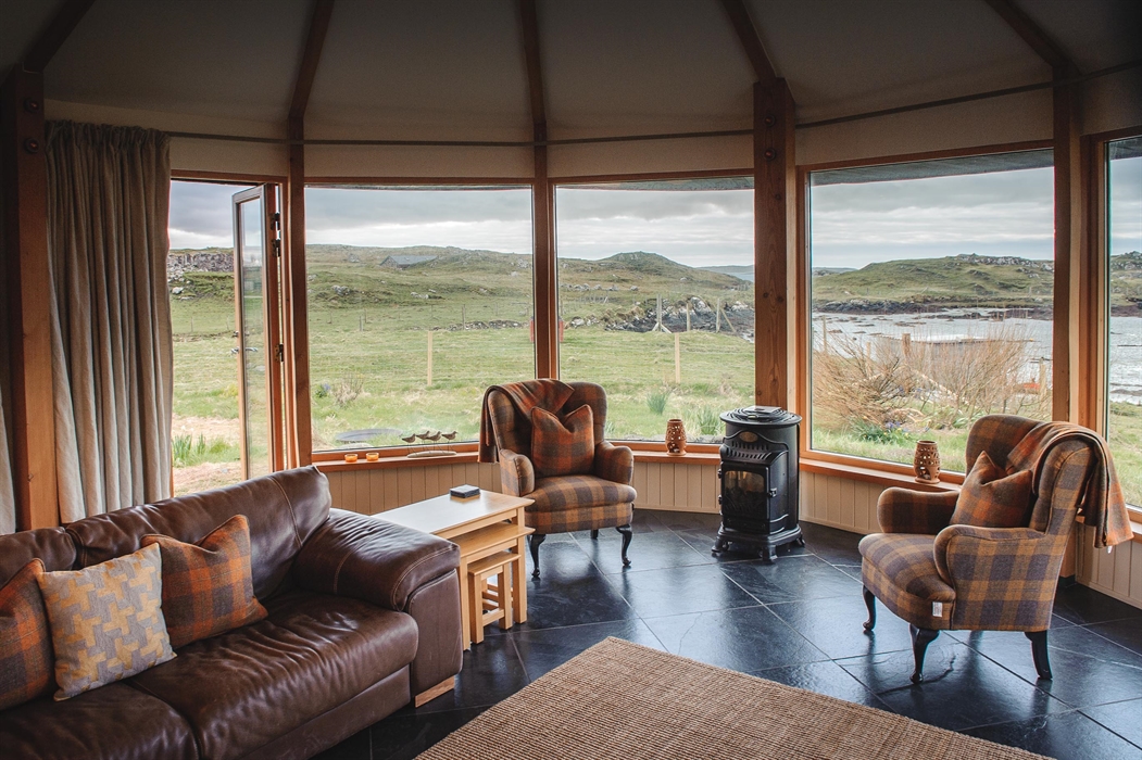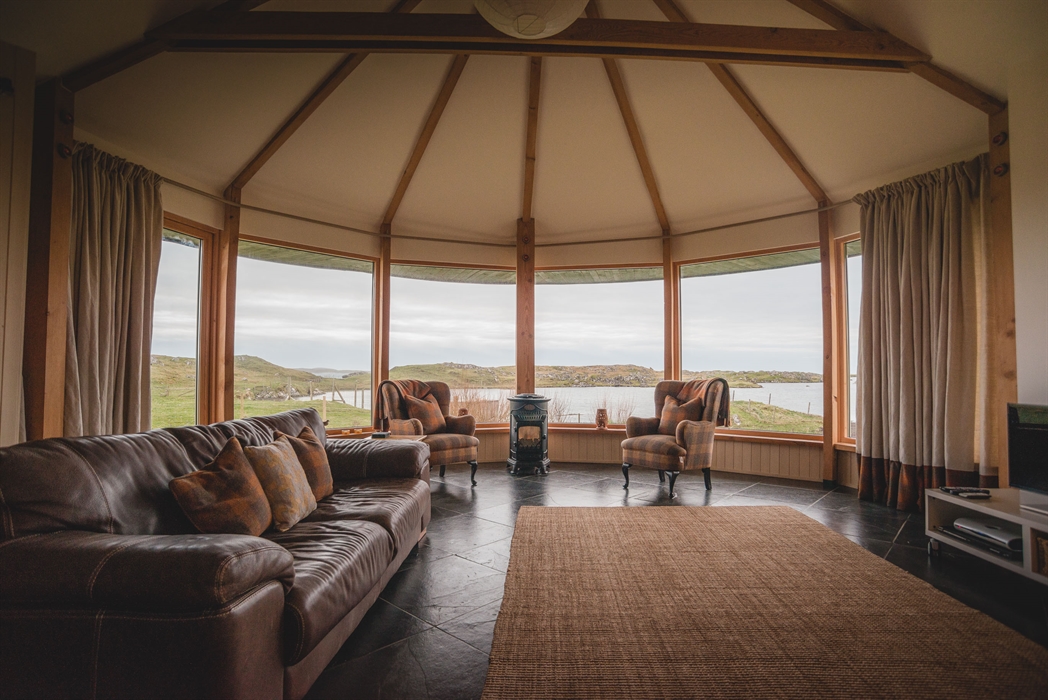 An architect designed contemporary renovation of a traditional Hebridean Blackhouse. Accommodation is for 2 adults in a downstairs master bedroom. There is a galleried sleeping platform with a king-sized bed if desired. The house is not suitable for children under the age of 14 years. The house does not take pets.