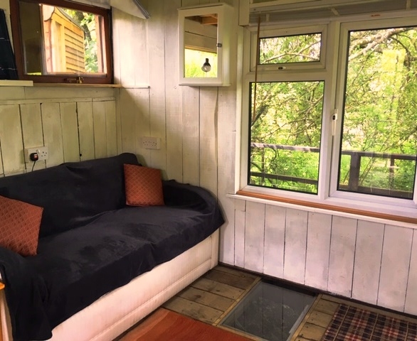 A totally unique retreat experience, secluded by trees and built over a burn with glass panels in the floor. Bright and spacious,comfortably sleeps 2, with electric heating, light and cooking facilities