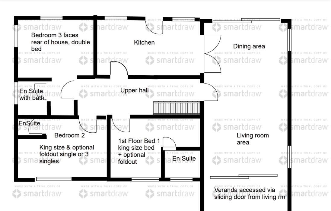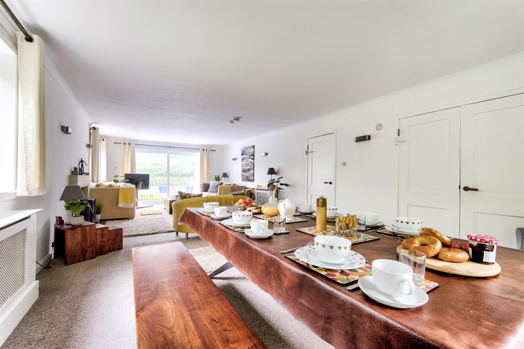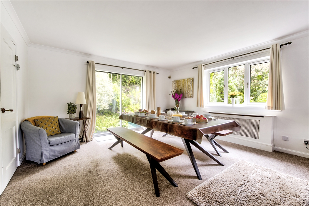You will also find, on the 1st floor, a fully equipped dining kitchen, with floor to ceiling windows at the dining area to enjoy looking out over the lovely gardens while eating. Cooker , microwave, toaster , kettle, fridge/freezer , washing machine, tumble dryer and dishwasher are all available for you in the property.