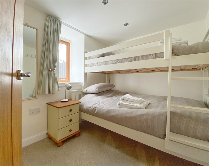Eastburn is a two bedroom cottage with a king size master bedroom (en suite) and a second bedroom which contains a triple sleeper (a double bed below and a single bed above) and a separate bathroom.
