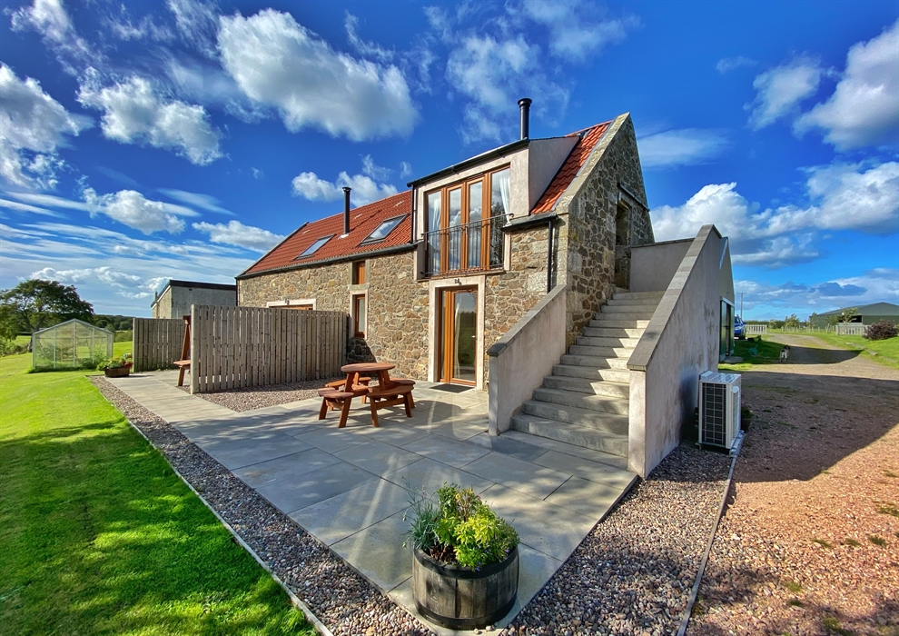 We are 6 miles south west of St Andrews, an hour's drive from Edinburgh Airport and 20 minutes from the main line station at Leuchars. The farm is at the end of 400 metres of track off the B941 - it’s beautifully quiet with calming countryside views and our fields that usually contain sheep. Spring is a wonderful time with lambing.
