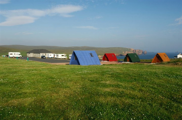 Overlooking the shore of Braewick Bay, our fully equipped site accommodates tents and up to 10 caravans including 4 with awnings. We make camping simple and convenient by providing full toilet, shower and laundry facilities, water and electricity.