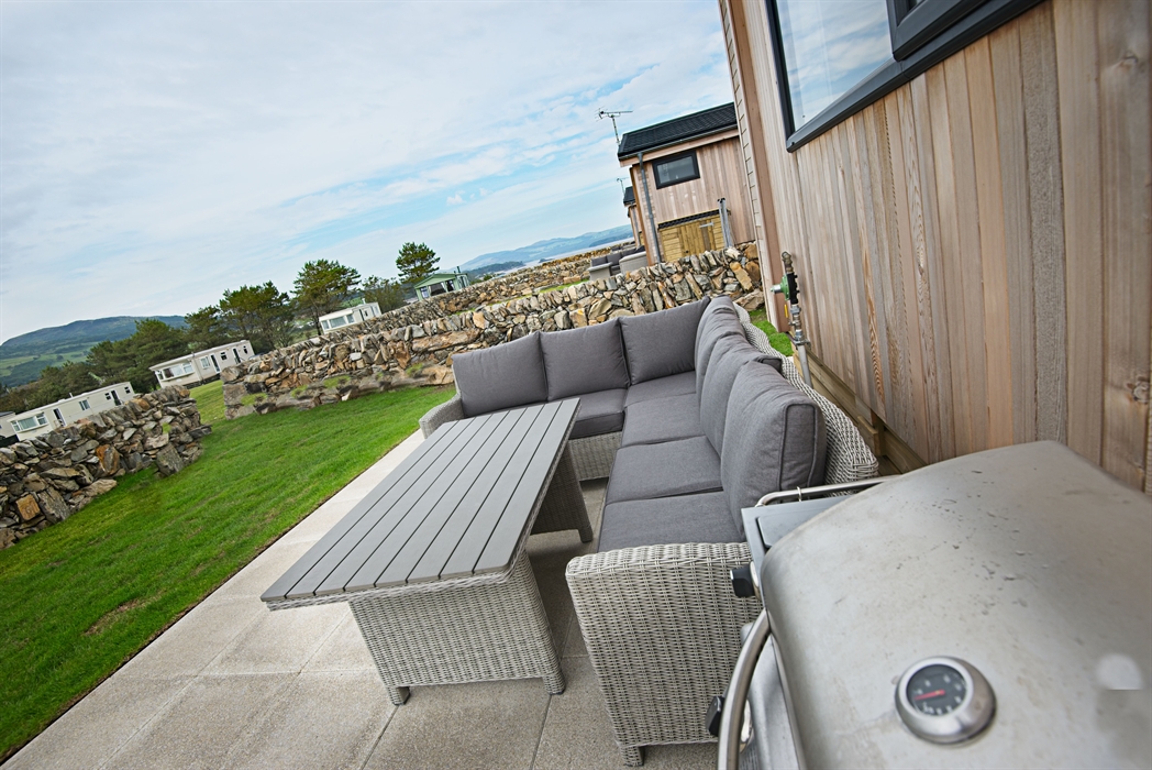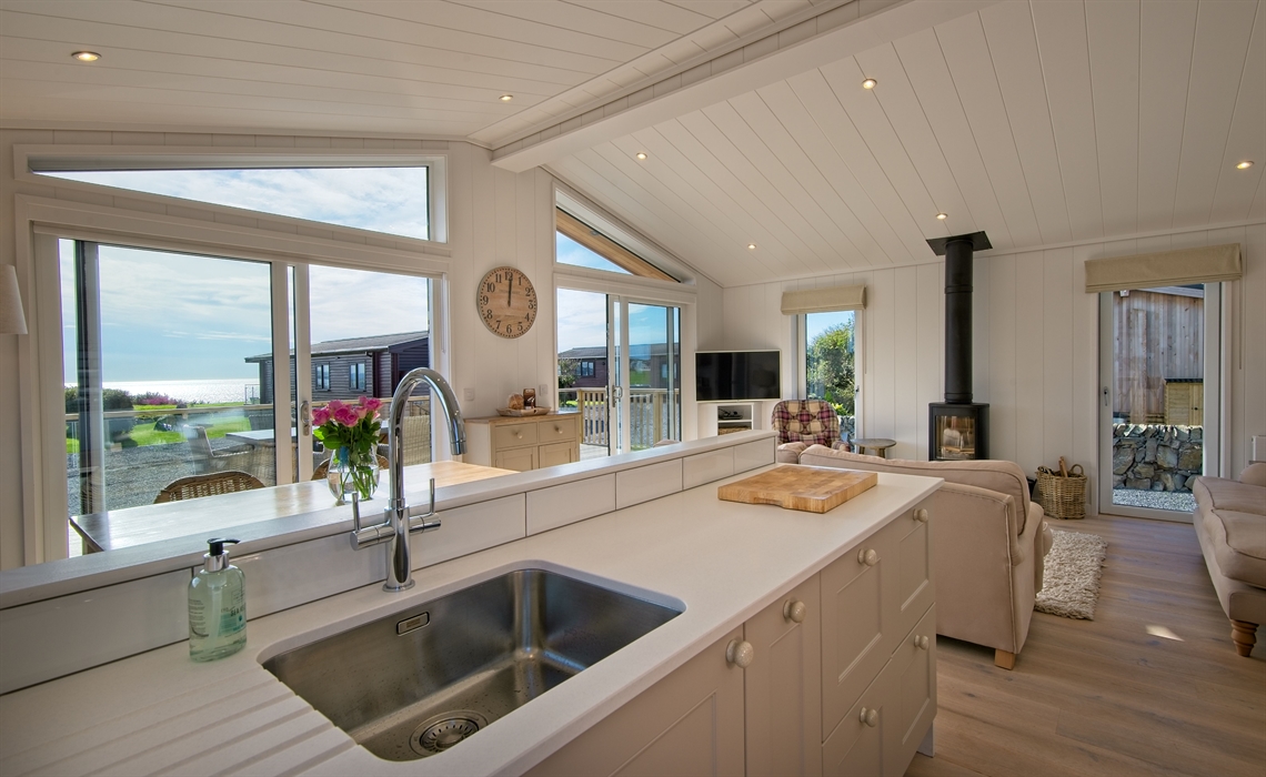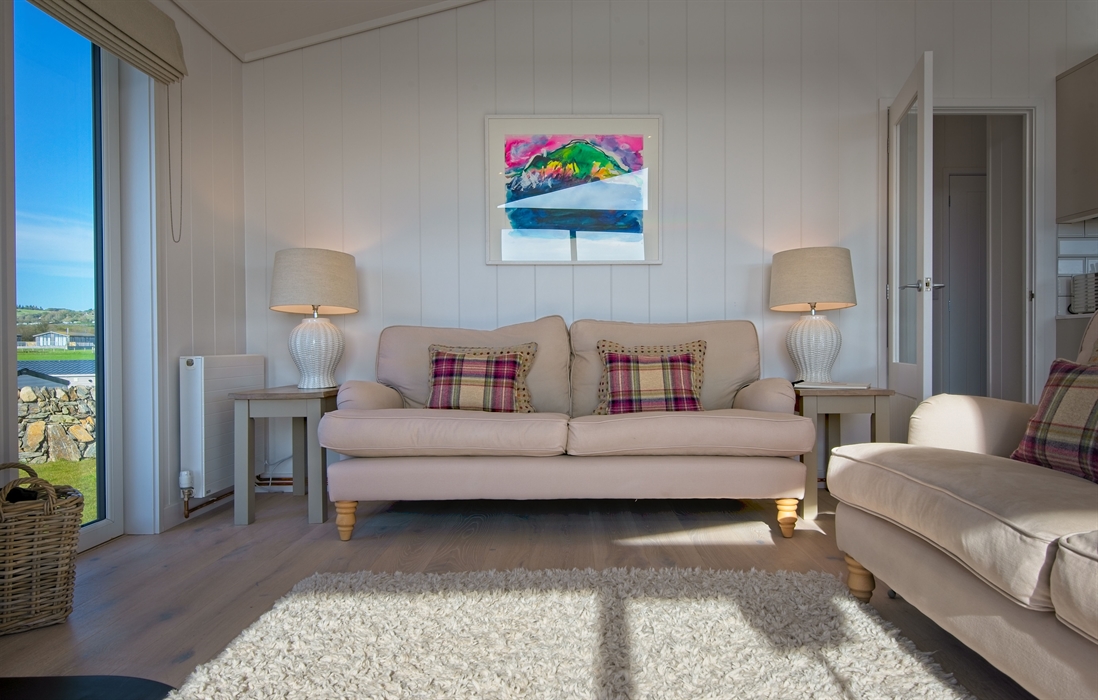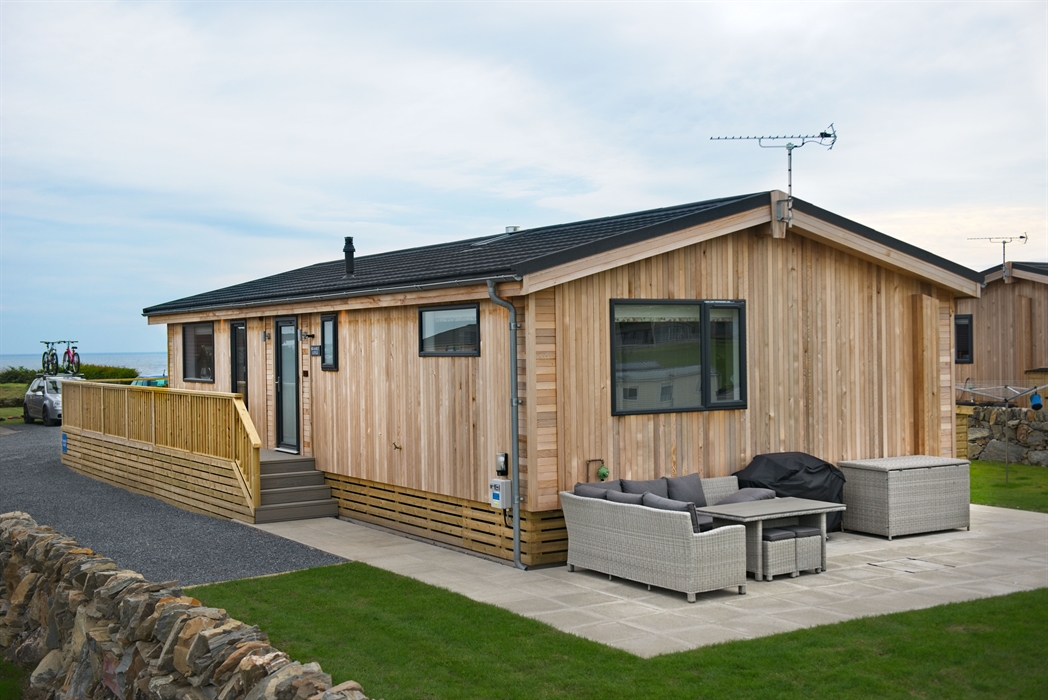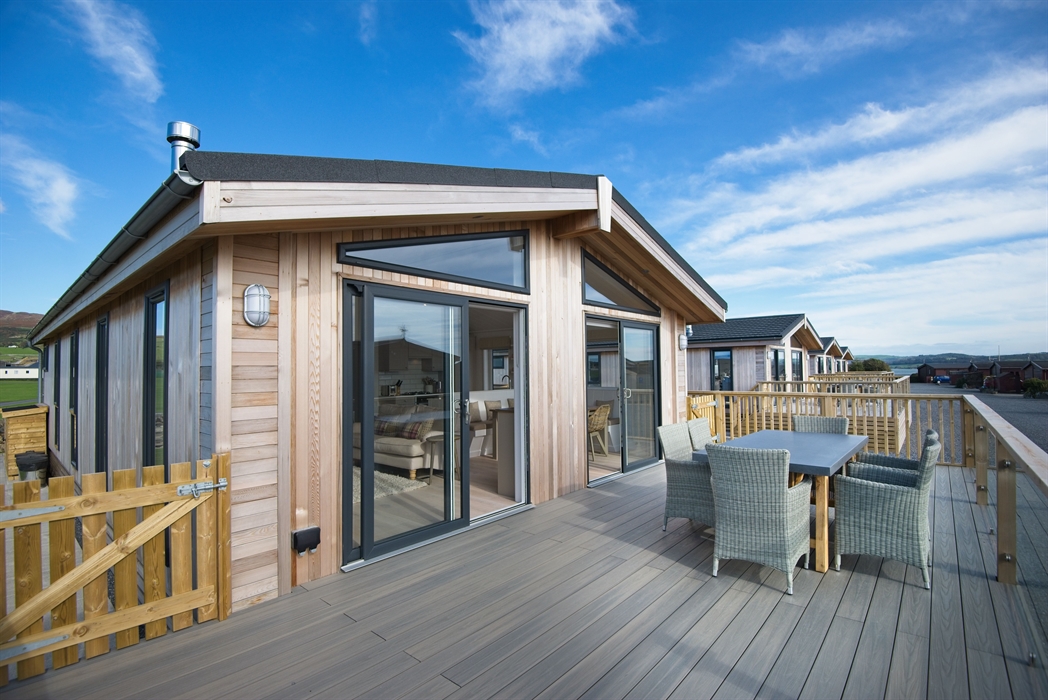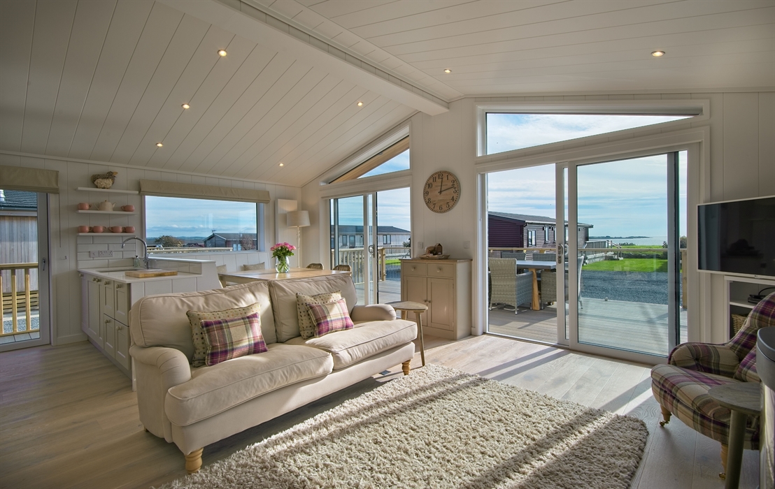 The lodge has a wonderfully spacious open plan kitchen/dining/living area with doors that open on to an enclosed deck overlooking Fleet Bay to the front, with evening sunsets and views to Ben John & the Galloway Hills from the rear of the lodge. Set on the headland, in a group of 5, these lodges are ideal if you wish to be accommodated together as a group.