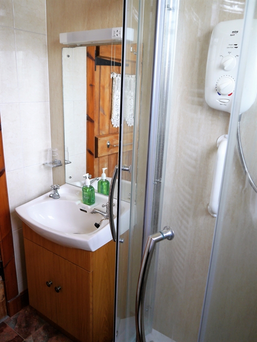 Accommodation for 4 on one floor: Steps down to Kitchen entrance; Kitchen; Living/Dining Room; Hallway; Double bedroom; Twin Bedroom; Shower room.