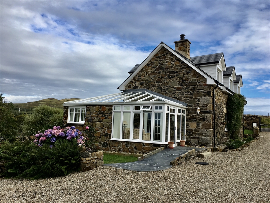 The Stone Barn has been transformed into a stunning contemporary living space with superb views over the landscape to Loch Scridain and Burgh.
