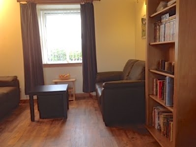Bridge House flat is the top half (street level) of a stone cottage in an excellent location in the centre of the lovely conservation village of Port Charlotte.