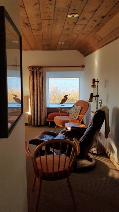 Brodgar Cottage has two bedrooms and sleeps up to four adults. It has a welcoming open plan living room and kitchen, with panoramic views of the surrounding lochs and countryside.