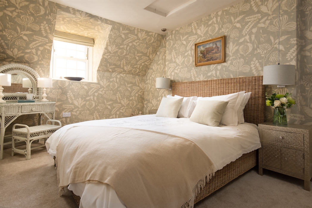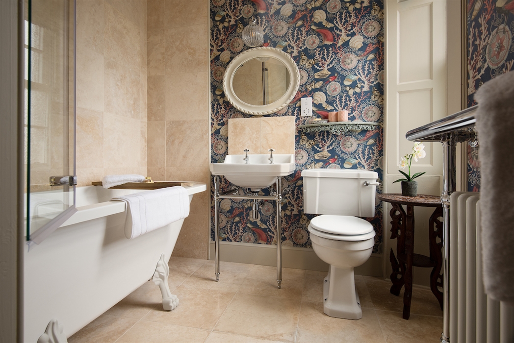 With no detail too small, the house is exquisitely decorated throughout. A capacious tiled boot room painted in vibrant teal provides ample space for your four-legged friend and walking attire, while the stylish family bathroom features warm honey-hued tiles, seashell wallpaper and claw-foot bathtub – perfect for a rejuvenating soak after a long yomp with the dog.