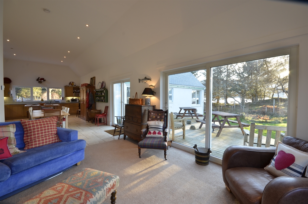 Bunallt Eachain Cottage is in a unique picture-book setting on Loch Sunart, 28 miles south of Fort William, with water surrounding the garden on three sides.