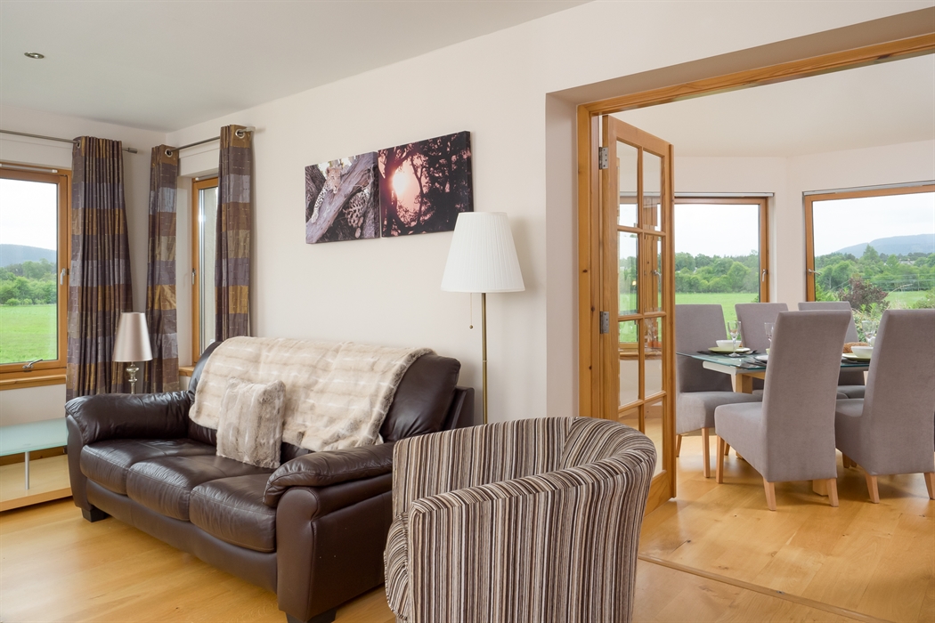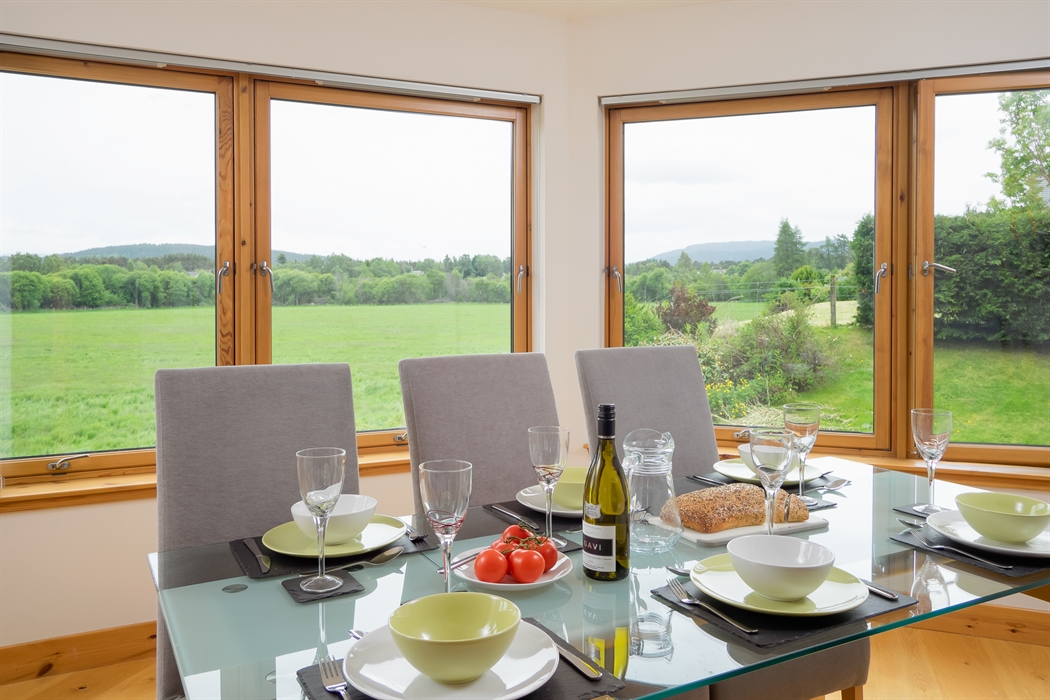 Contemporary, light and spacious with stunning panoramic views, Burnbrae is a great family-friendly detached house situated in the attractive and historic village of Carrbridge, in the heart of the Cairngorms National Park.