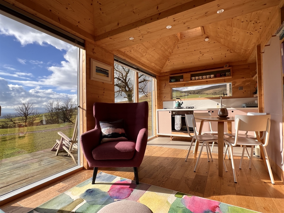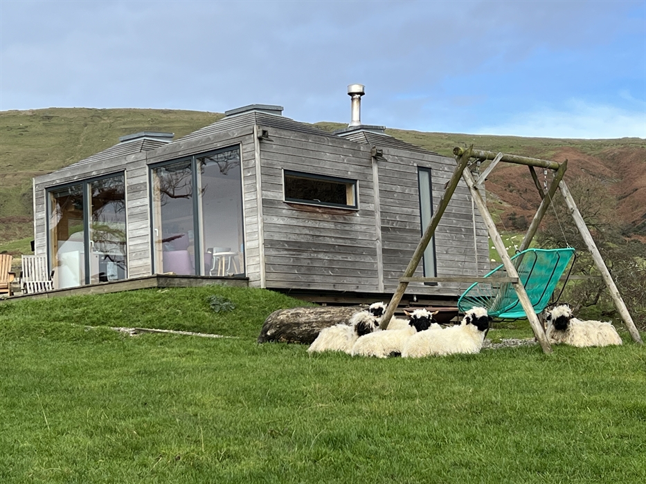 Luxury off grid glamping cabin set on a working farm with only sheep as your neighbours.