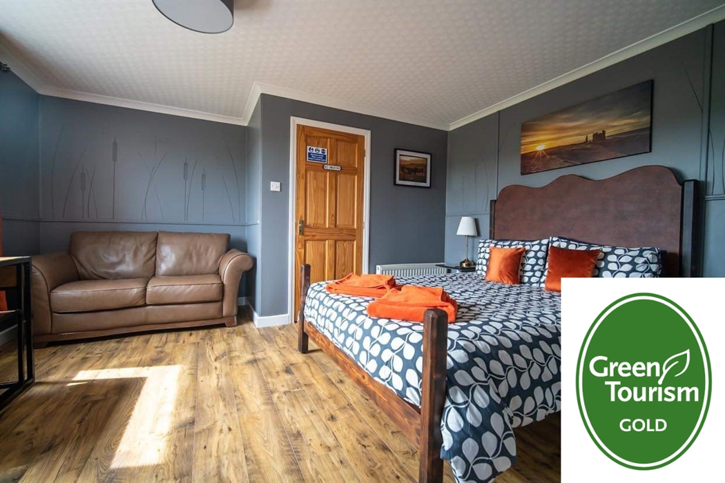 A bespoke eco-friendly B&B, with self catering studio flat (Green Tourism Gold Award). Situated in open countryside with views out over towards the Isle of Stroma and Orkney beyond. Located just 800m off the NC500, close to the Gills Bay Orkney ferry & John O'groats. We offer an extensive optional evening menu via Room Service & we are Vegan Friendly. Alcohol Licence from February 2024. Dogs Welcome
