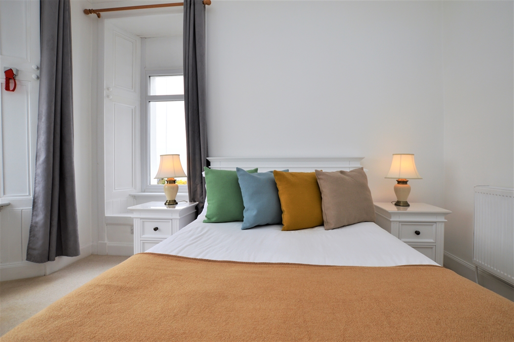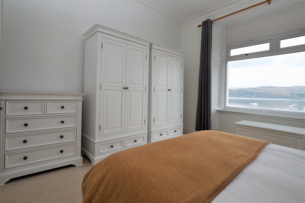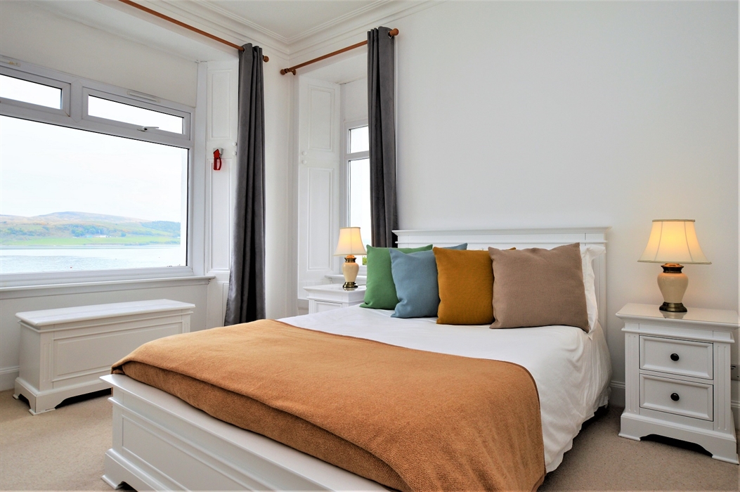 Bedroom 1: Double bed, wardrobe, bedside tables, sea views