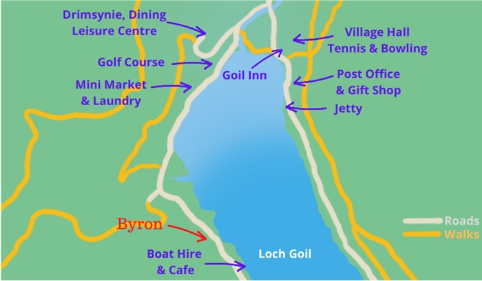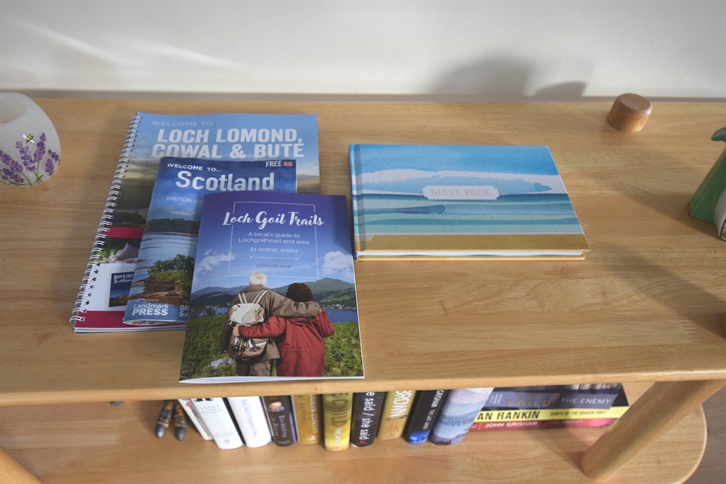 Sitting on the private driveway leading to Bowater Cottage, Byron Cottage is tucked away in an elevated position, screened by trees and bushes from the neighbouring houses. Off road parking for one car in front of the cottage. Just over a mile to Lochgoilhead Village, and less than a mile to the leisure, entertainment and dining options available at the Drimsynie Holiday Village. We are also close to Loch Goil Cruisers, for hiring a boat on Loch Goil, and their Boat Shed Cafe. The views are over the head of Loch Goil to Ben Donich. Bring your binoculars to enjoy the bird life in the trees as well as the red squirrels which are often seen in the garden. Don’t be surprised if you see a deer walking on the slope behind the cottage.