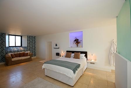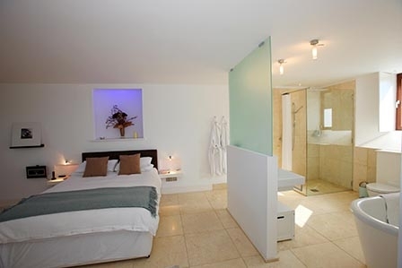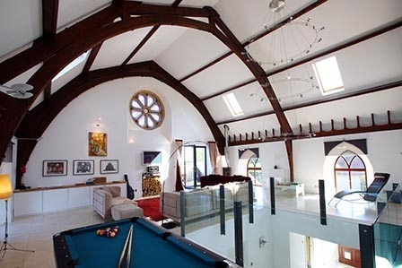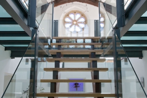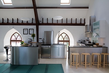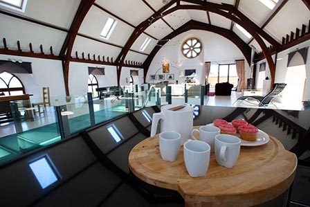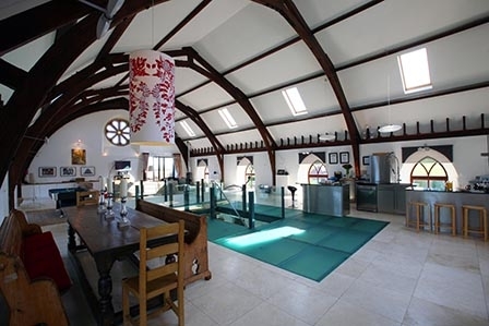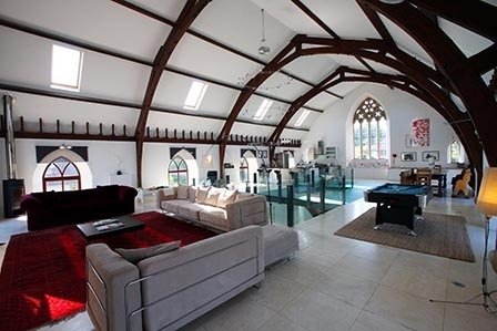 The light-filled bedrooms in the main part of the church are furnished in a simple, contemporary style enhanced by light through the opaque floor tiles of the floor above. The substantial master bedroom has its own bathroom complete with designer fittings, argon mood lighting and a state of the art sound system.