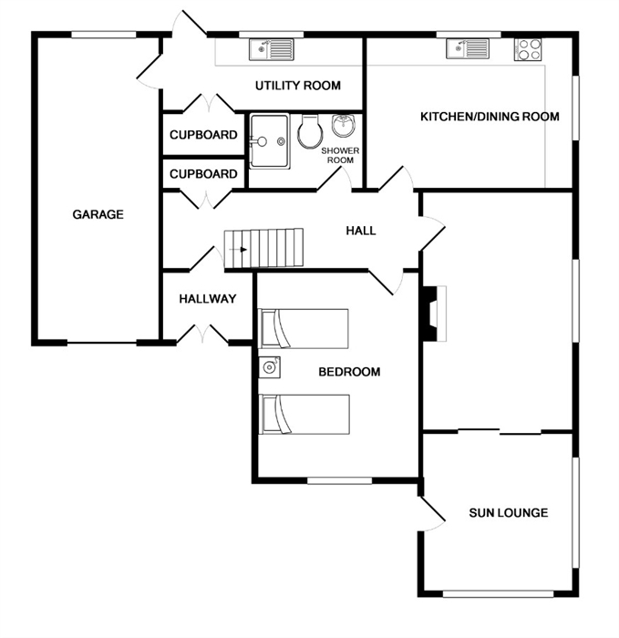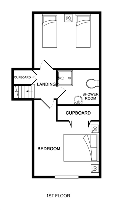 First floor: King size bed with sea-views; Twin bedroom (with additional truckle bed); Shower room with WC.