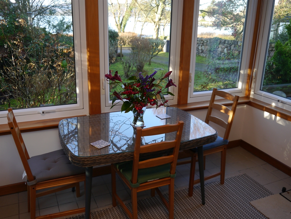 Ground floor: Sitting room with wood burner; Sun-room; Spacious kitchen/dining room; Utility room; Twin bedroom with sea-views; Shower room with WC.